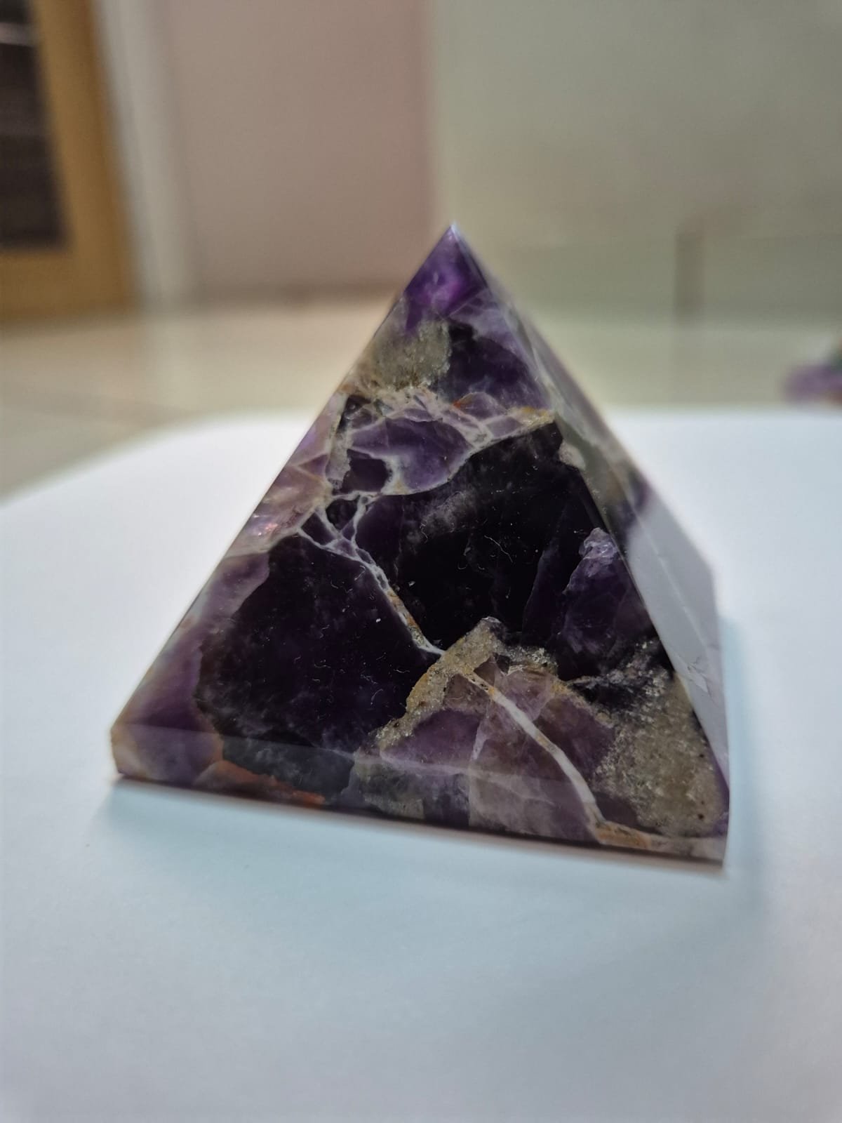 Add elegance and positive charm to your space with our Amethyst Pyramid, a stunning piece of handcrafted crystal decor.