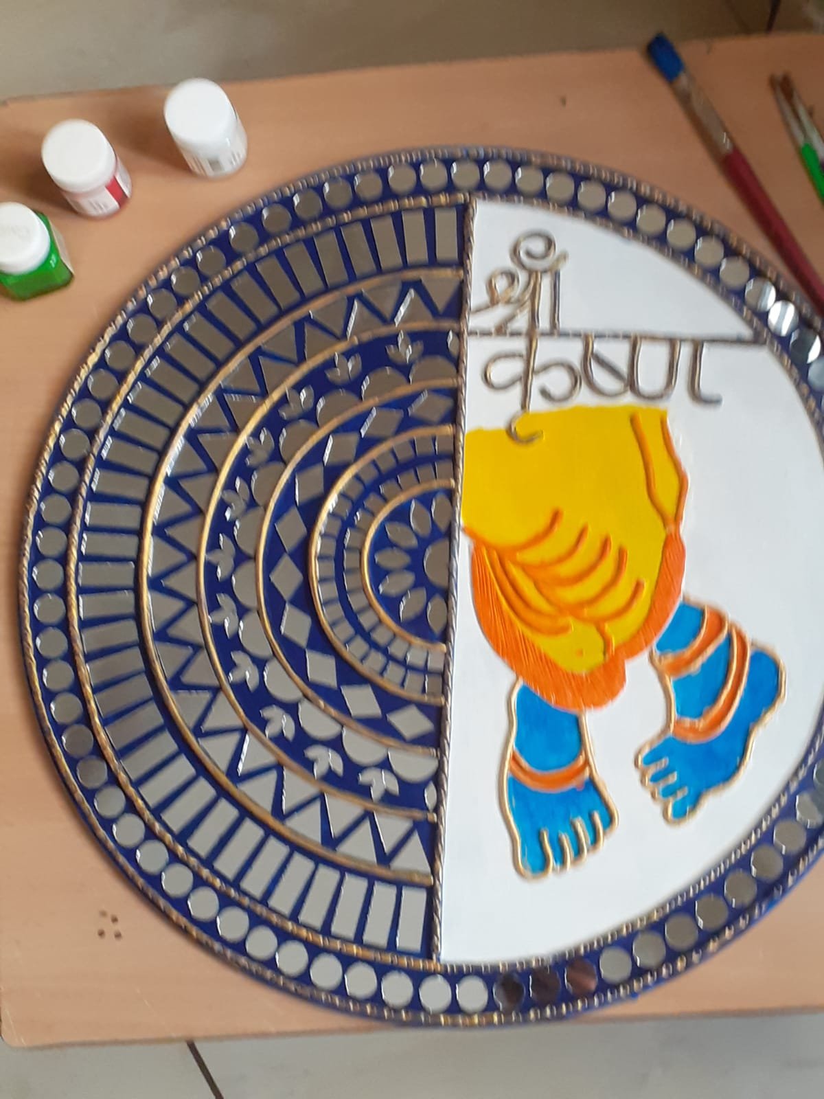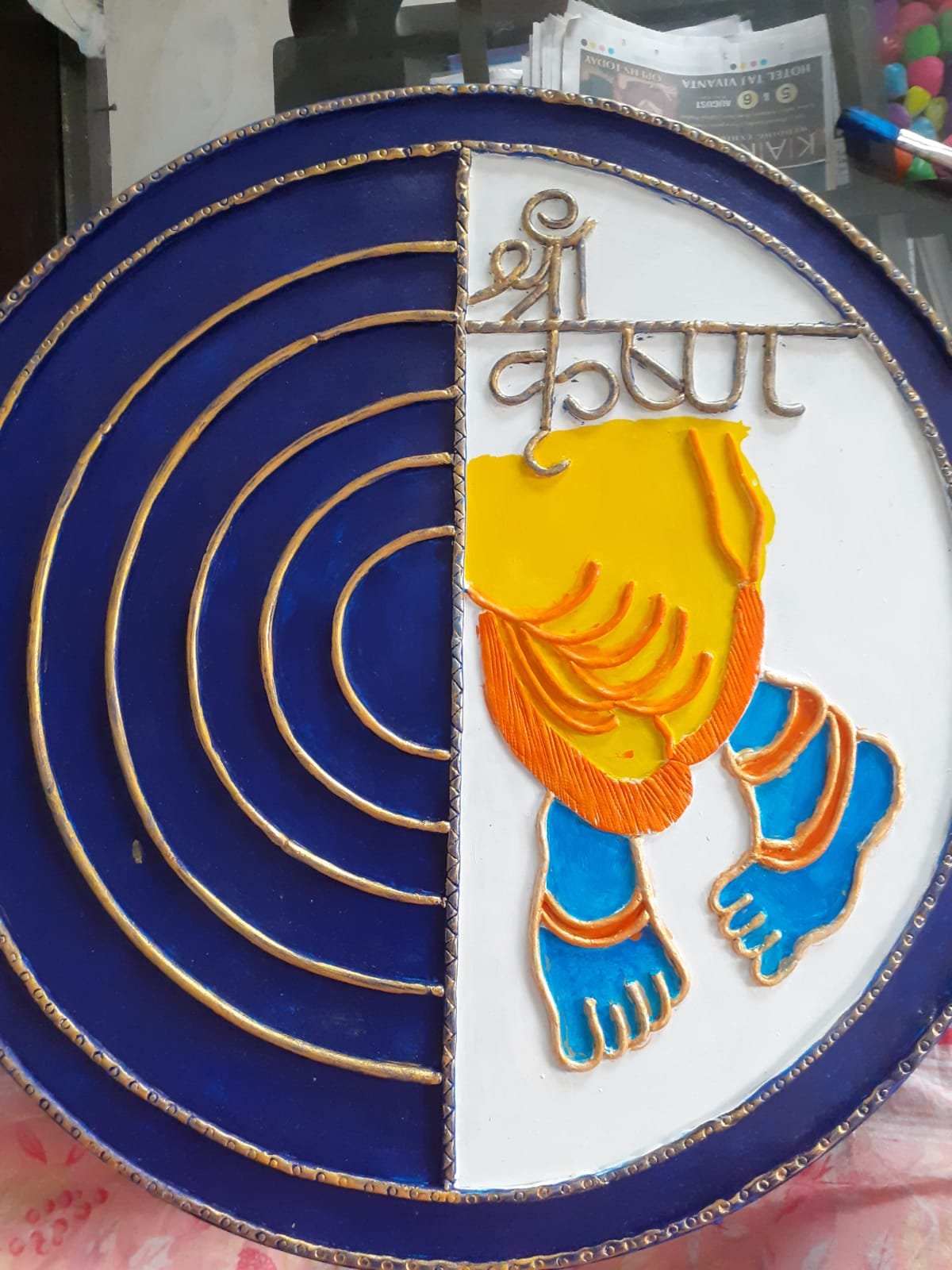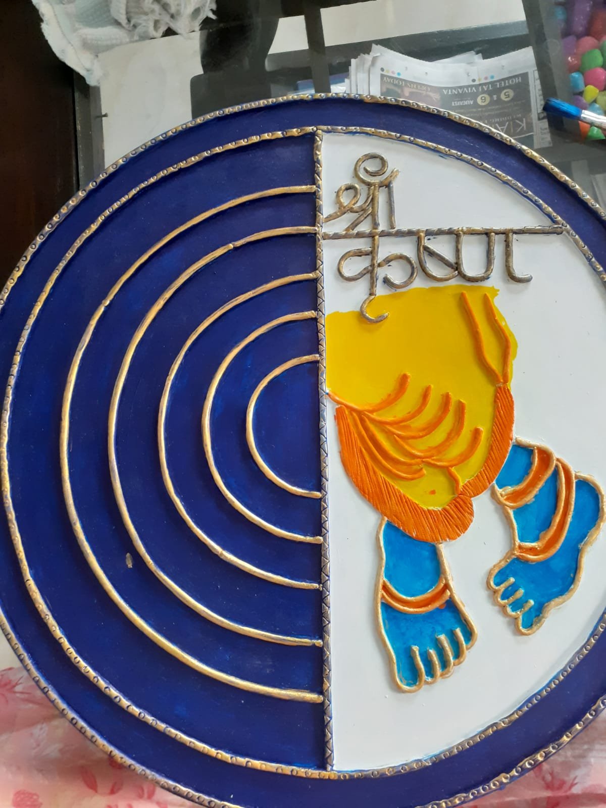 Experience the Divine Charm of Handcrafted Lippan Art with the Shree Krishna Frame